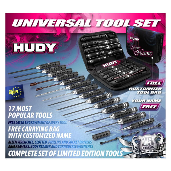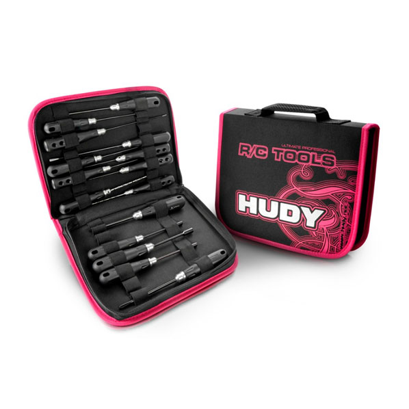HUDY profiTOOLS Complete Set features 15 most frequently used hand tools for all types and scales of R/C cars.