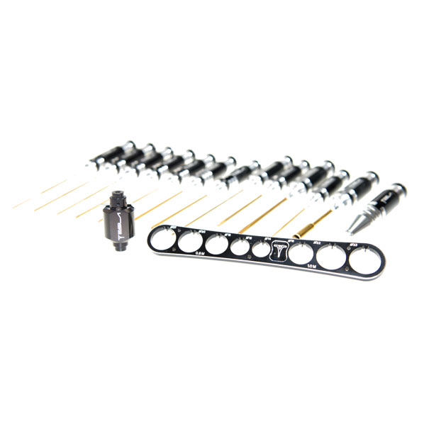Tesla screw drivers are a full range of tools, they are made using a black anodised and ergonomically-shaped aluminium handle while the tool tips are machined from titanium-nitride coated spring steel. Available are 1.5mm to 3.0mm hex head wrenches, 2.0mm to 5.0mm ball hex wrenches as well as 3.0mm and 5.0mm flat head and a 4.0mm Philips screw drivers.